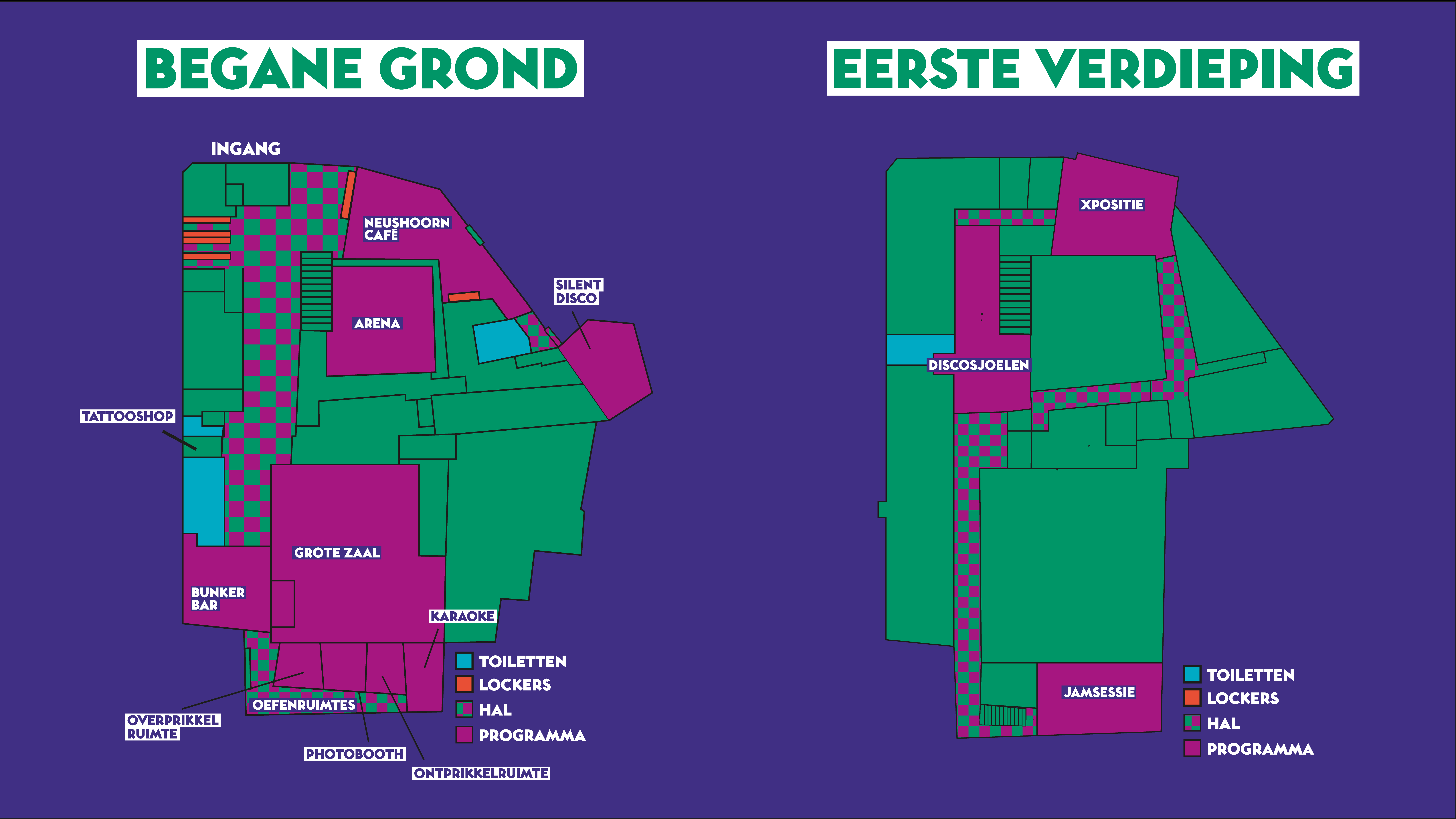 Oké, misschien geven we toch een klein tipje van de sluier, want je kunt natuurlijk een hoop vets verwachten. Denk aan Heavy, Indie, Hiphop en een heerlijk nachtprogramma. Maar er is meer: je kunt een echte Neushoorn-tattoo laten zetten (met beloning!), een dampende dark room induiken, losgaan met discosjoelen, dansen bij de silent disco en de oren van je vrienden laten bloeden tijdens een karaoke-sessie. Neushoorn binnenstebuiten en op de kop!